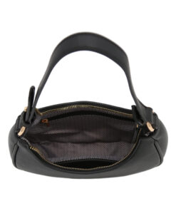 Upgrade your accessories collection with this chic black crescent-shaped shoulder bag. Its minimalist design and compact size make it ideal for everyday use and special occasions, offering both style and practicality.